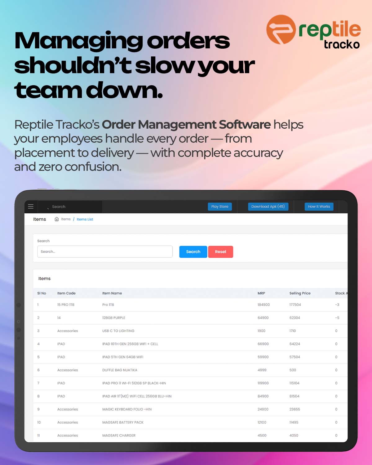 Reptile Tracko Order Management Software ensures accuracy, speed, and control.